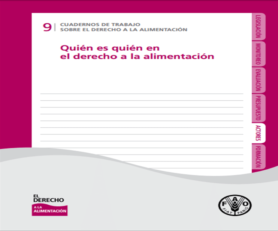 Cuadernos de trabajo que ofrece una visión de conjunto sobre quién es quién y cuál es su papel en la realización del derecho humano a la alimentación.